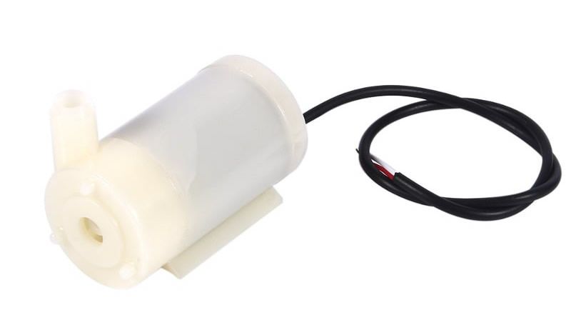 A mini bomba d’água que foi utilizada para este artigo é do tipo submersa, possui vedação de seu circuito elétrico com proteção IP68. É compatível nas principais plataformas de desenvolvimento embarcado, como Arduino, NodeMCU e Raspberry Pi 3, pois suporta tensões entre 2.5V à 6V, e corrente máxima de 200mA. Sua elevação máxima é de 1 metro, impulsionando a água até 1,5 litro por minuto.