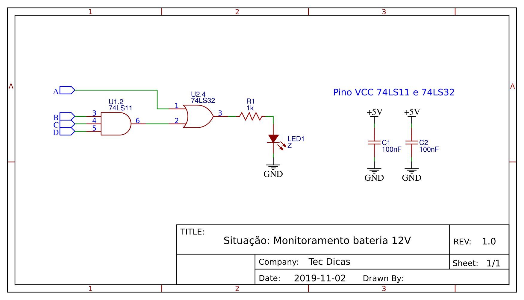 - 1 CI 74LS11 – 3 portas lógicas AND de três entradas