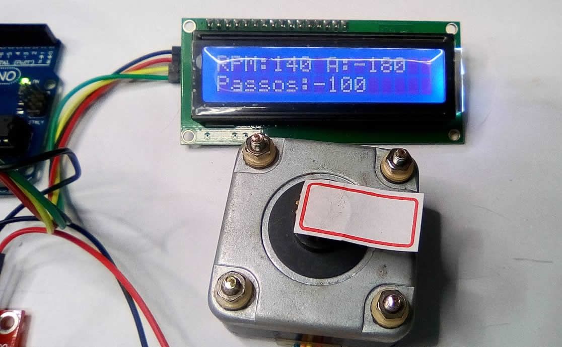 A função Rotacionar(int angulo, int velocidade) controla a rotação do motor de passo, onde o ângulo e velocidade são adquiridos para realizar o cálculo de SPR para cada movimento, e as informações de velocidade em RPM, ângulo e passos são exibidos no display LCD oferecendo uma maior interação com o projeto. Você pode modificar os valores no loop para realizar diferentes ângulos e velocidades. Se você preferir, pode utilizar o código sem display LCD.