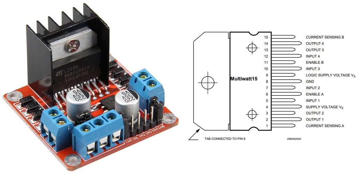 - 1 Módulo Ponte H Dupla L298N